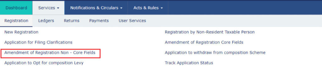 Services → Registration → Amendment of Registration (Non-core Fields).